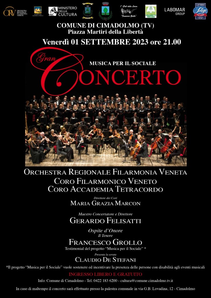 Scritto il 2 settembre 202325 settembre 2023 Musica per il sociale – Gran Concerto Lirico a Cimadolmo (TV) Scroll down to see more content